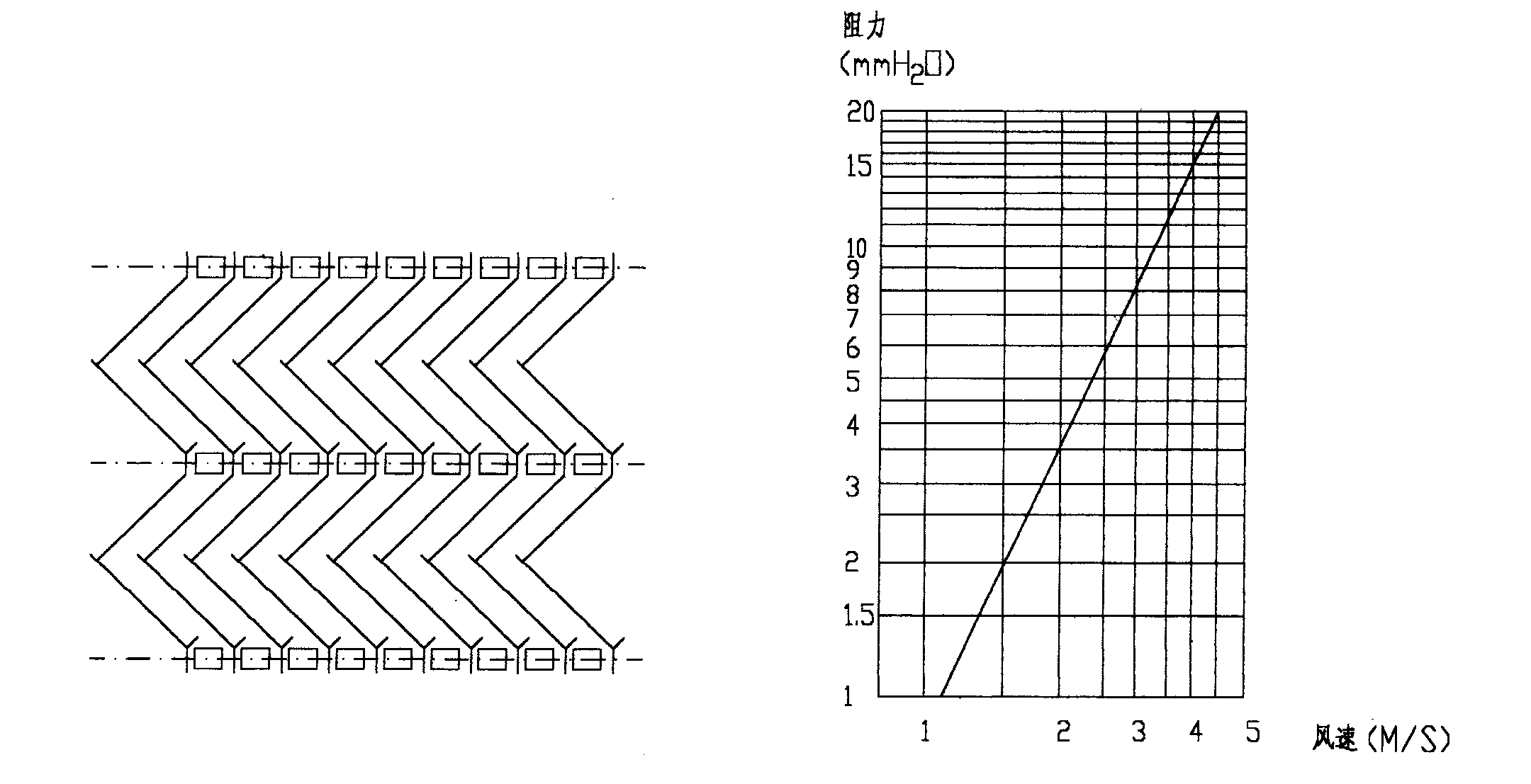 图六 四折挡水板串片组 图七 四折挡水板阻力曲线图
