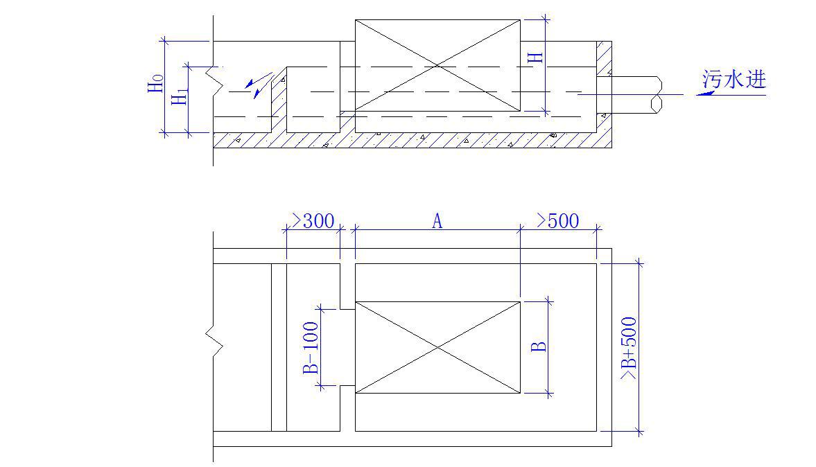 1、本设备一般安装在污水池的出口处,水池尺寸如图。